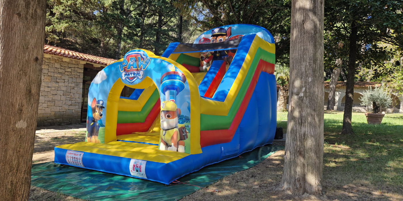 Napuhanac Paw Patrol sadrži sve što treba za zabavu i velikih i malih – veliki uzbudljivi tobogan sa zaštitnom mrežom, ali i prednji prostor za igru!