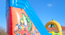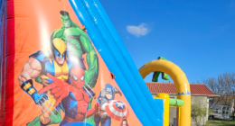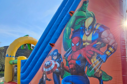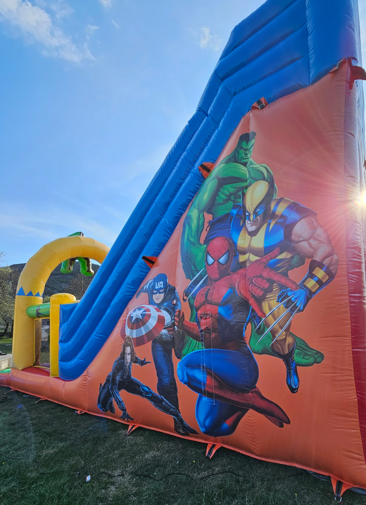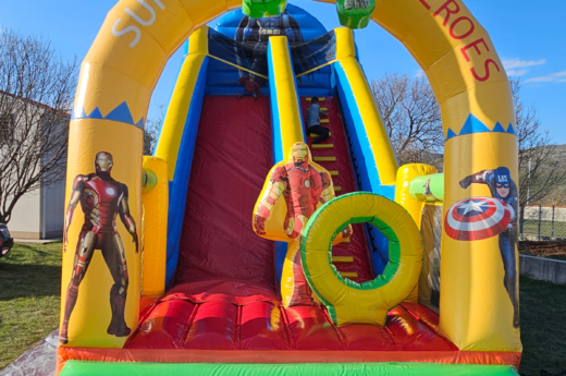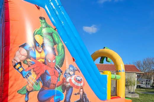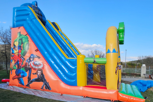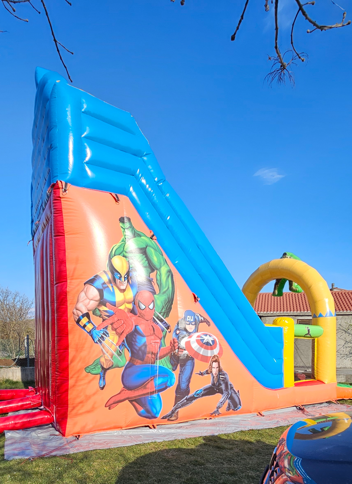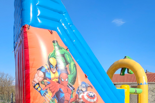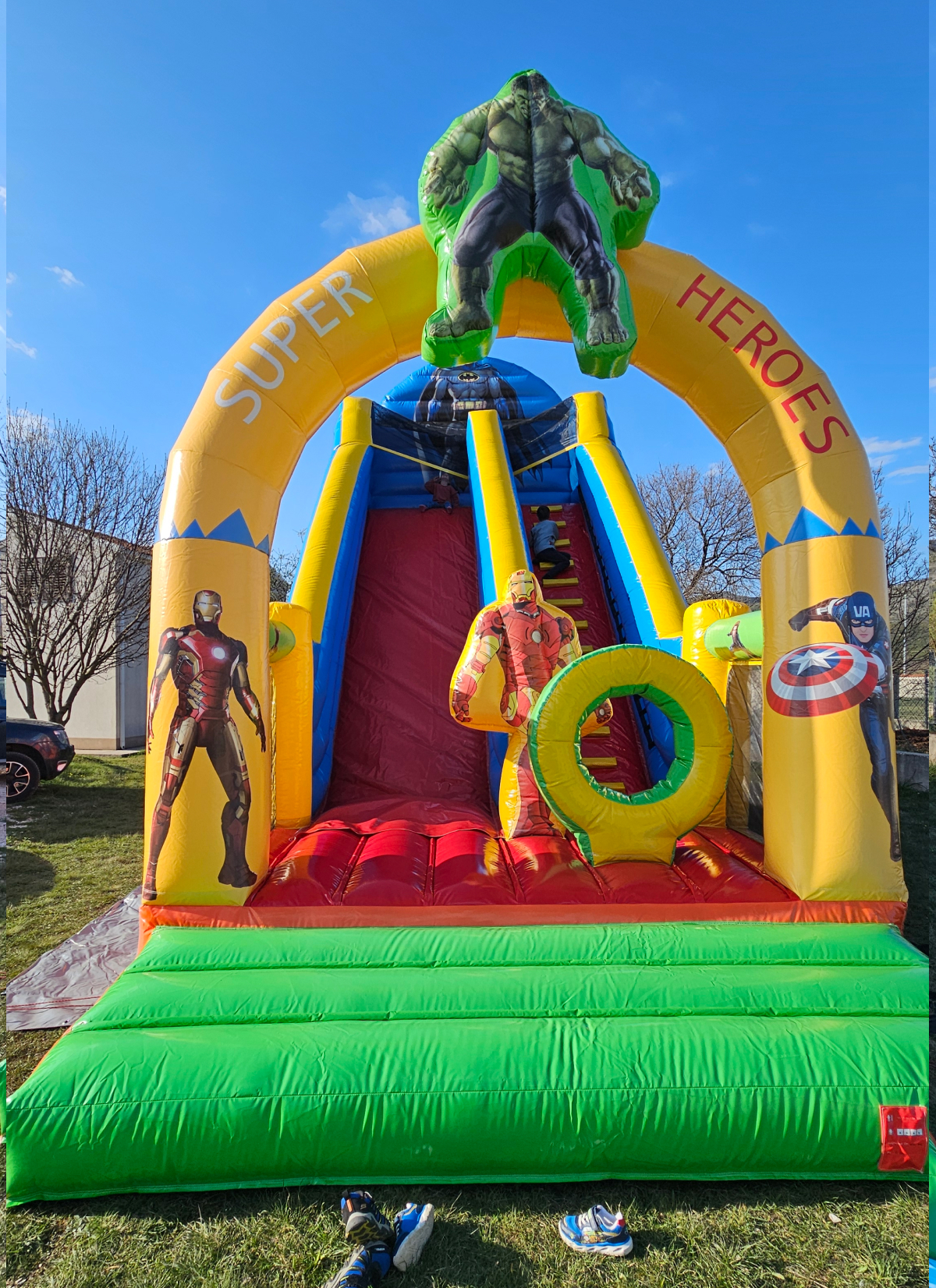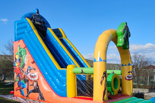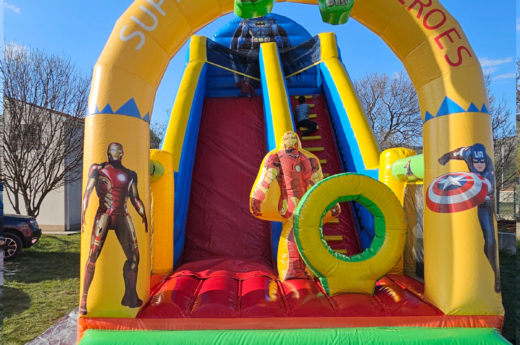 Napuhanac Superheroji prava je poslastica za veću djecu – super strmi i visoki tobogan garantira jurnjavu i navalu adrenalina i najvećima. Također ima zaštitnu mrežu kao mjeru opreza.